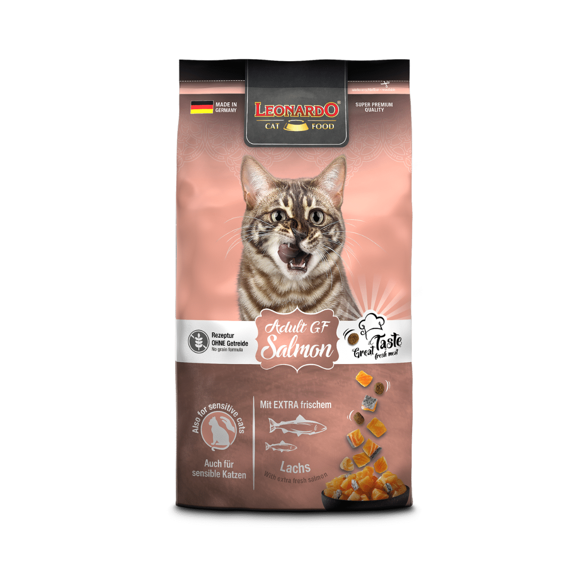 El alimento Leonardo Adult Salmon GF es la solución nutricional más avanzada para gatos adultos que padecen intolerancias alimentarias o sensibilidades digestivas severas. Al ser una fórmula 100% Grain Free (libre de cereales), eliminamos el riesgo de alergias al gluten, trigo o maíz. En su lugar, utilizamos fuentes de carbohidratos alternativas de bajo índice glucémico, asegurando que tu felino reciba una energía constante y saludable sin comprometer su sistema digestivo.
